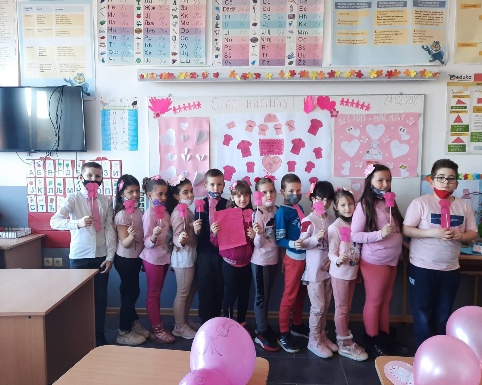 Дан борбе против вршњачког насиља обележава се последње среде у фебруару месецу. Ученици другог разреда су са својом учитељицом Наташом Бајић Миливојевић обележили овај дан у природи, уз розе балоне и поруке које прокламују ненасиље међу вршњацима. Подсетимо, обележавање Дана борбе против вршњачког насиља почиње од 2007. године, у знак подршке дечаку из Канаде који је био изложен бруталном вршњачком насиљу.