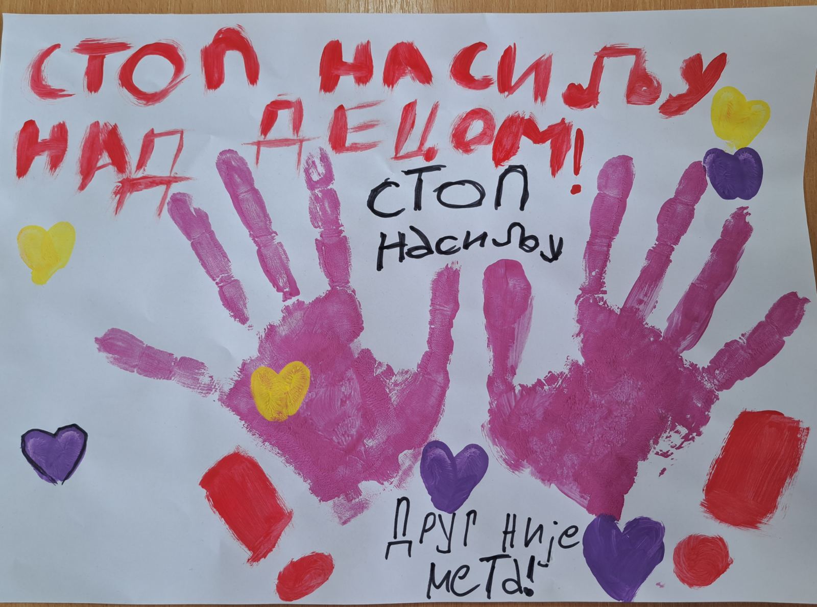 Учитељица четвртог разреда Наташа Бајић Миливојевић је са својим ученицима презентовала садржај о борби против вршњачког насиља у холу школе. Презентацији су присуствовали учитељи и ученици првог циклуса, као и родитељи ученика. На веома креативан начин, ученици четвртог разреда су направили розе штанд за бесплатне загрљаје, затим кутију жеља и хамере на којима пише Стоп насиљу!