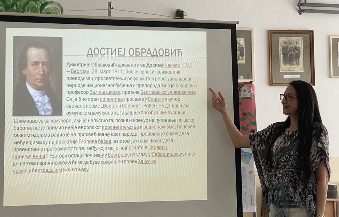 Десети април, дан кад је Доситеј преминуо (1811), одређен је за Дан сећања на Доситеја Обрадовића, знаменитог српског просветитеља. Наша школа је данас обележила овај дан низом активности. Ученици првог циклуса су кроз презентацију о Доситејевом животу и раду упознали нашег великог просветитеља, а затим су кроз читање басни добили увид у Доситејево књижевно дело. Организатор Дана сећања на Доситеја Обрадовића у првом циклусу била је библиотекарка Александра Миловановић.