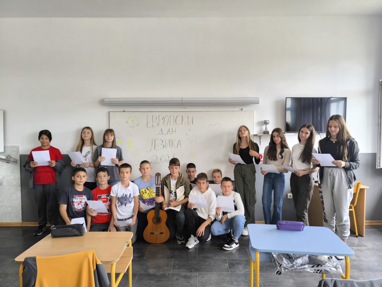 Наставници српског језика су, такође, учествовали у обележавању Европског дана језика. Одељење VII-2, са својим наставником српског језика Владимиром Старчевићем, осмислило је представу о језицима. Кроз дијалог, шалу и песму, дочарали су лепоту ромског и српског језика. Ученици V-1 су са предметном наставницом Бојаном Симић Туфегџић исписивали лепе речи које их асоцирају на мир, на српском и ромском језику. Наставница српског језика Слађана Кошанин је са ученицима седмог разреда писала речи на српском, ромском, руском и енглеском језику, док је са ученицима VIII-1 радила упоредну анализу песме „Бреза“ Сергеја Јесењина, на српском и руском језику.