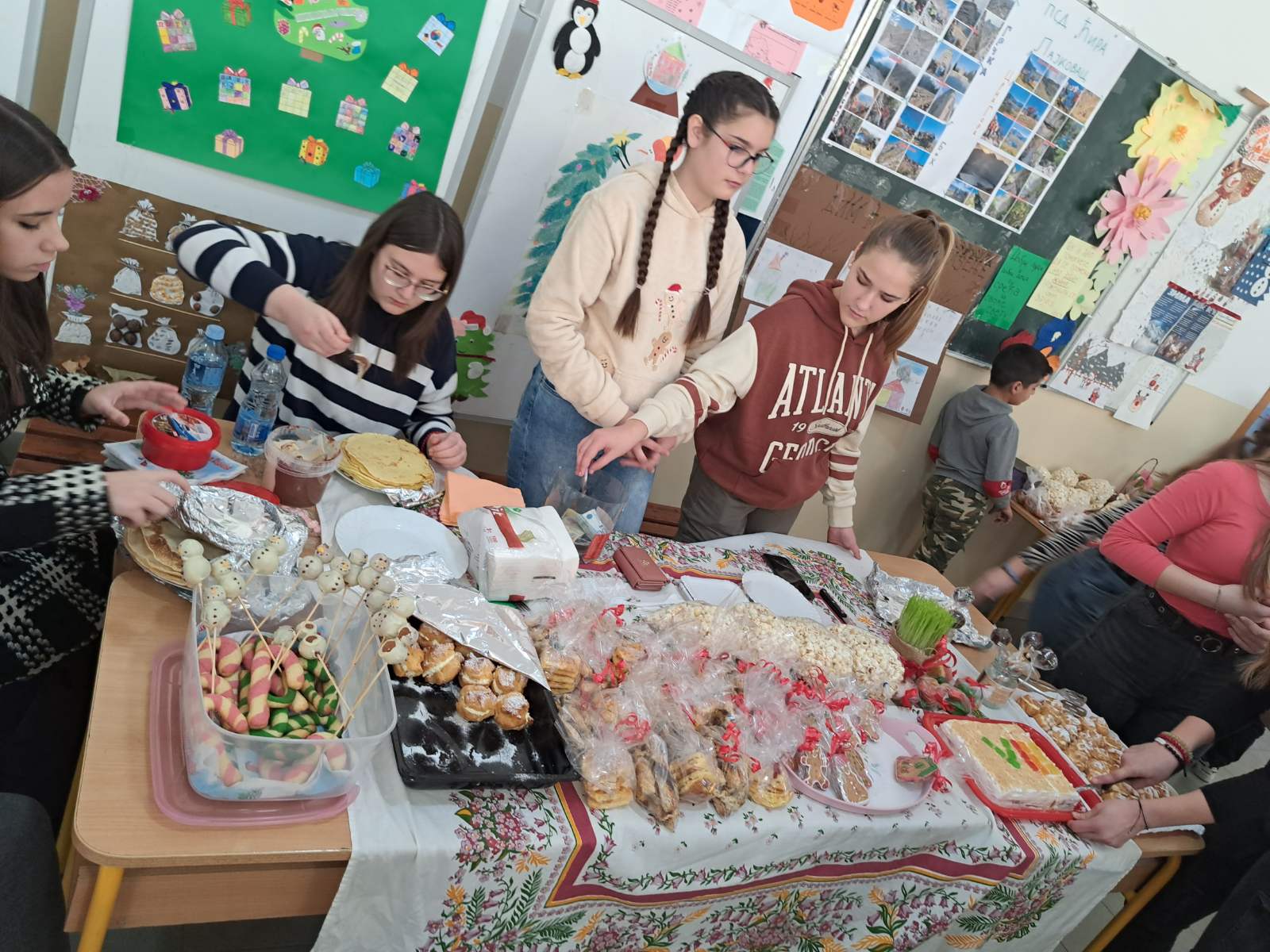 Последњи наставни дан првог полугодишта у нашој школи завршен је продајним базаром. Новац прикупљен на продајном базару намењен је куповини украсних биљака за хол школе како бисмо оплеменили простор за наше ученике и запослене. На базару су учествовала сва одељења од првог до осмог разреда. Штандови су били изложени у холу школе, а на њима су се могли наћи новогодишњи украси, декоративне фигуре, честитке и храна (кокице, торте, колачи, погачице). Поред ученика и запослених, учешће у припремању базара узели су и родитељи наших ученика. Базар је био веома успешан и овом приликом се захваљујемо свим учесницима који су допринели прикупљању новчаних средстава како би се оплеменио унутрашњи простор школе.